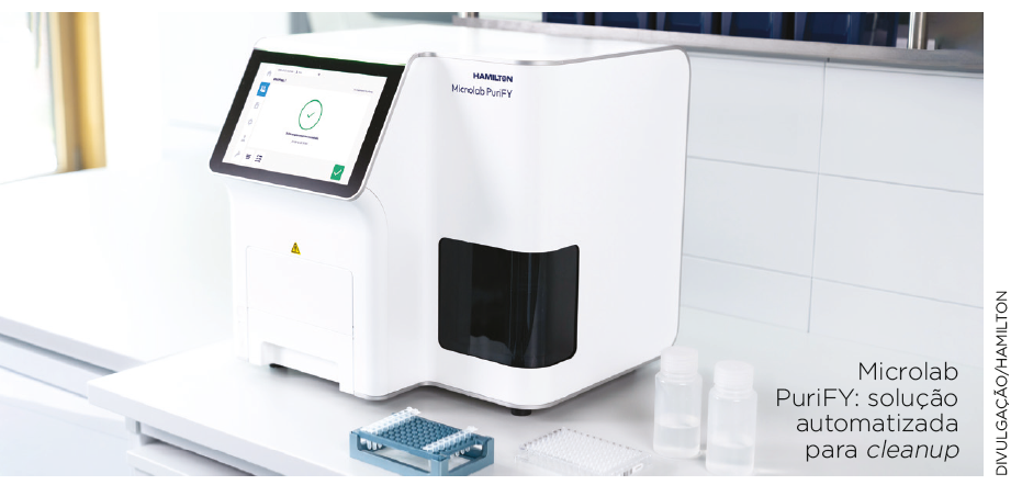 Cansado de cleanups manuais e trabalhosos para a preparação de bibliotecas NGS? O Microlab PuriFy, da Hamilton (https://www.hamiltoncompany.com/microlab-purify), oferece uma solução compacta e independente para cleanup automatizado por beads magnéticas. Esse sistema inovador agiliza etapas trabalhosas, permitindo que os usuários se concentrem na liberação rápida de resultados.